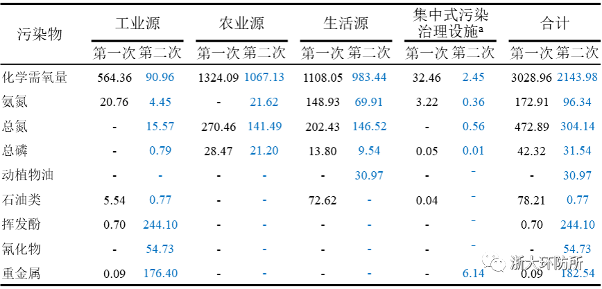a第一次全國污染源普查中,集中式污染治理設(shè)施指垃圾處理廠(滲濾液)污染物排放量;第二次全國污染源普查中,集中式污染治理設(shè)施指垃圾處理和危險(xiǎn)廢物(醫(yī)療廢物)處置廢水(滲濾液)污染物排放量。