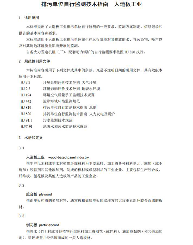 2.排污單位自行監(jiān)測技術指南 人造板工業(yè)(征求意見稿)
