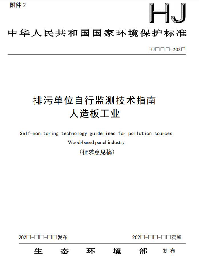 近日,生態(tài)環(huán)境部發(fā)布《排污單位自行監(jiān)測技術指南 人造板工業(yè)(征求意見稿)》,為落實環(huán)境保護法的有關要求,進一步規(guī)范排污單位自行監(jiān)測工作,本標準適用于人造板工業(yè)排污單位在生產(chǎn)運行階段對其排放的水、氣污染物,噪聲以 及對其周邊環(huán)境質(zhì)量影響開展的監(jiān)測。