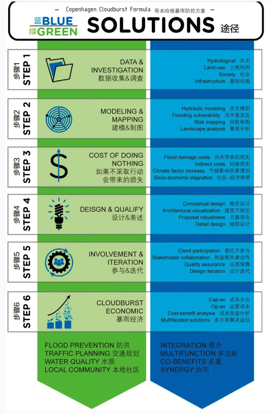 與極端天氣的對抗猶如一場戰(zhàn)爭。但我們必須在開戰(zhàn)前構(gòu)想愿景,并做出合理的作戰(zhàn)計劃。在編著于公元前5世紀的中國古代軍事寶典《孫子兵法》中,作者就強調(diào)了制定目標與計劃對成功的重要意義(原文為:夫未戰(zhàn)而廟算勝者,得算多也)。這樣的道理同樣也適用于當今城市與暴雨之間的戰(zhàn)爭。我們的目標非常明確——我們希望城市是宜居的,同時可以緩解氣候變化的影響。而若沒有周密合理的計劃,即使投入數(shù)億的資金,我們也只會輸?shù)暨@場戰(zhàn)爭。