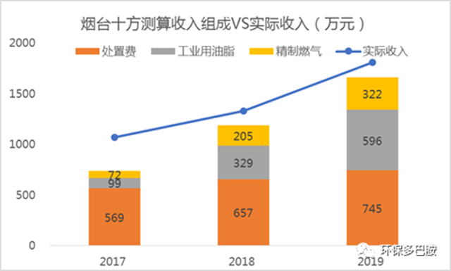 3)在煙臺(tái)項(xiàng)目中,政府處置費(fèi)占比45%,粗油脂銷售占比36%,精制燃?xì)怃N售占比19%。這主要是由于煙臺(tái)項(xiàng)目實(shí)際處置量低于政府保底量,因而實(shí)際處置產(chǎn)生的粗油脂及燃?xì)怃N售較低,而政府依據(jù)保底量付出的處置費(fèi)占比較高。