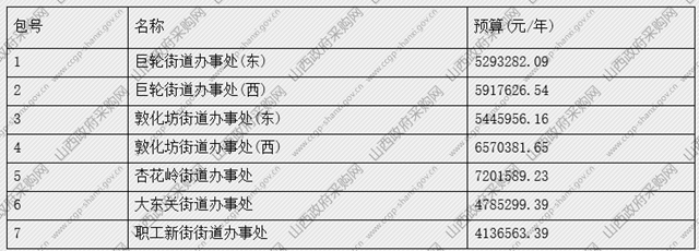 項(xiàng)目一分為了7個包,預(yù)算每年3935.07萬元。服務(wù)內(nèi)容包括城市倒庫清掃保潔、小廣告清理和果皮箱清掏保潔、城市綠地保潔、無物業(yè)樓院保潔、生活垃圾分類收集、環(huán)衛(wèi)應(yīng)急保障等。開標(biāo)時間在8月31日9點(diǎn)。