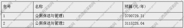 項(xiàng)目五分2個包,投標(biāo)人需負(fù)責(zé)公廁管理及維護(hù)和公廁應(yīng)急保障等,每年預(yù)算681.60萬元。本項(xiàng)目無特定資格要求,開標(biāo)時間定為9月9日。