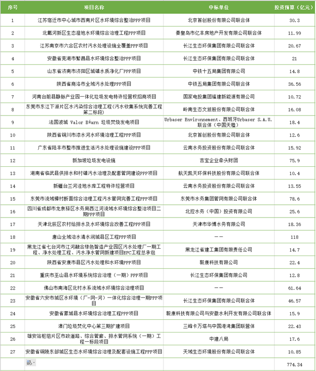 中標(biāo)單位:Urbaser Environnement、西班牙Urbaser S.A.U.聯(lián)合體(中國(guó)天楹)
