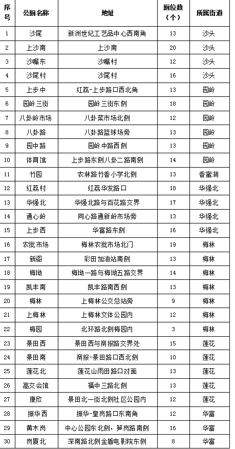 各街道市政公廁分布明細(xì)如下:
