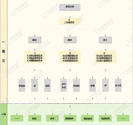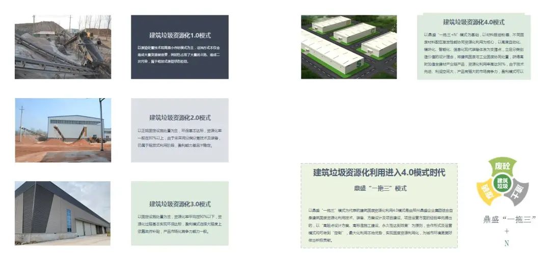 簡(jiǎn)而言之,鄭州鼎盛公司提出的建筑垃圾資源化4.0核心點(diǎn)就是“一拖三+N”模式+工業(yè)固廢協(xié)同資源化利用。
