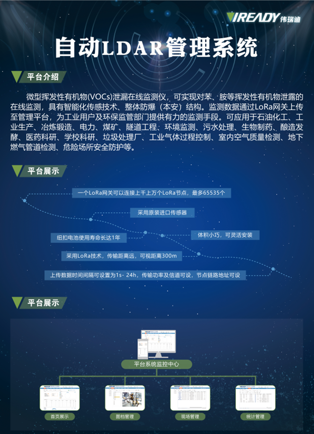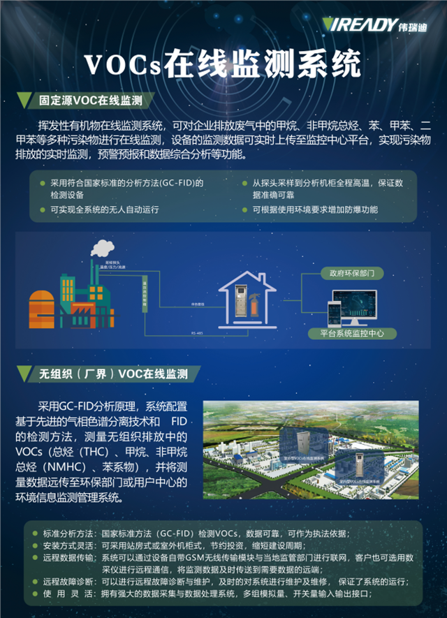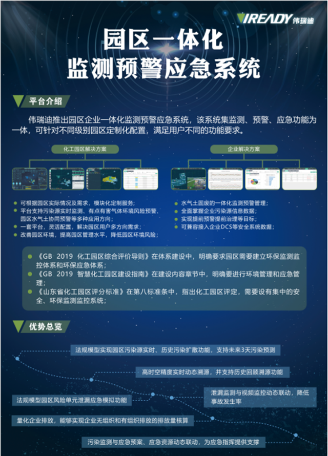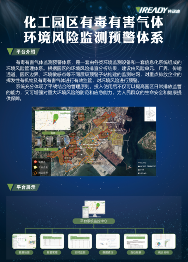 特別是在生態(tài)環(huán)境部發(fā)布的《2020年揮發(fā)性有機物治理攻堅方案》的要求下,偉瑞迪提出的VOCs在線監(jiān)測與環(huán)境風(fēng)險預(yù)警一體化解決方案不僅貼合實際需求,對有組織排放和無組織排放多方位有效監(jiān)管,而且能夠解決園區(qū)污染種類多、環(huán)境敏感點多、環(huán)境風(fēng)險壓力大的問題。