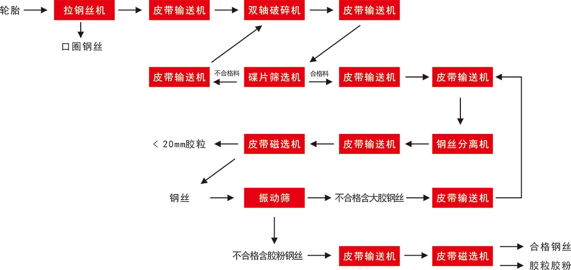 據(jù)介紹,斯瑞德輪胎破碎處理系統(tǒng)主要由雙軸剪切式破碎機、鋼絲分離機、輸送機、碟片篩選機、磁選機、振動篩、電控系統(tǒng)等構(gòu)成,方案主要應用于制作TDF替代燃料,出料粒徑可控制在100mm-50mm以下,處理產(chǎn)量可達6-8噸/小時。