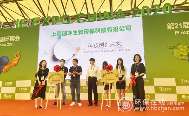 圖為環(huán)博會新品首發(fā)大會上,上海創(chuàng)凈生物揭牌儀式