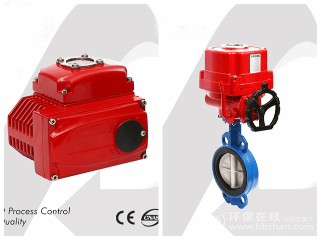 圖為電動(dòng)執(zhí)行器(左)與紅色防爆電動(dòng)對夾蝶閥(右)