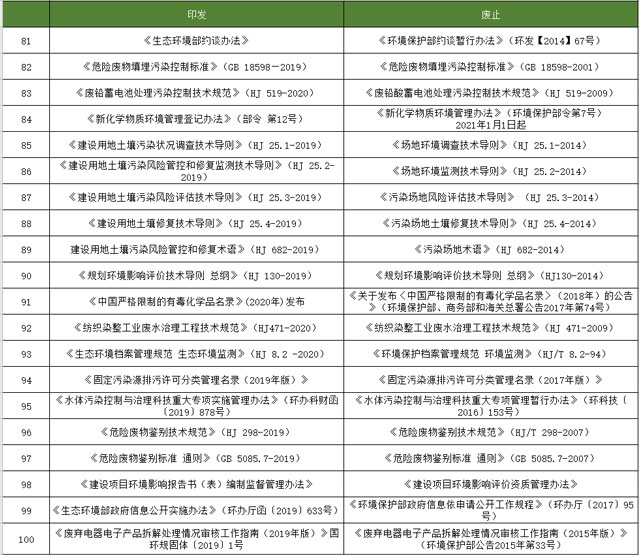 本文簡要回顧一下,生態(tài)環(huán)境部發(fā)布的那些關(guān)于廢止規(guī)章條例/政策標(biāo)準(zhǔn)的信息: