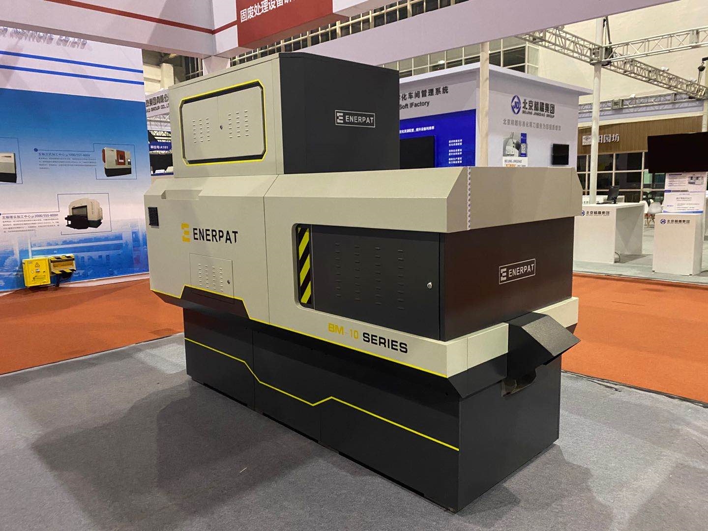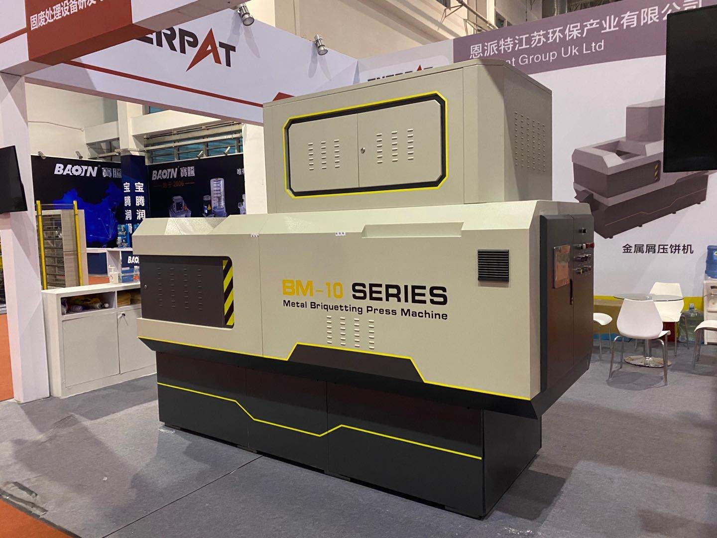 作為此次參展產(chǎn)品的重頭戲,BM系列全自動(dòng)金屬屑?jí)猴灆C(jī)可謂“內(nèi)外兼修”,不僅擁有美觀、人性化的設(shè)計(jì),而且設(shè)備升級(jí)了智能化功能、新穎的雙絞龍送料結(jié)構(gòu)、獨(dú)特的壓縮裝置、便捷的維護(hù)設(shè)計(jì),保障了壓餅機(jī)的大壓縮比、高壓縮效率、較好的物料壓縮效果,恩派特全自動(dòng)金屬屑?jí)猴灆C(jī)可以廣泛用于鐵屑、銅屑、鋼屑、鋁屑、合金鋼屑等壓餅處置,成功解決了車間金屬切屑難收集,切屑液滴漏的難題!展會(huì)現(xiàn)場(chǎng),這臺(tái)金屬屑?jí)猴灆C(jī)經(jīng)常被現(xiàn)場(chǎng)觀眾圍在中間,客戶圍繞設(shè)備的功能、質(zhì)量進(jìn)行溝通交流。