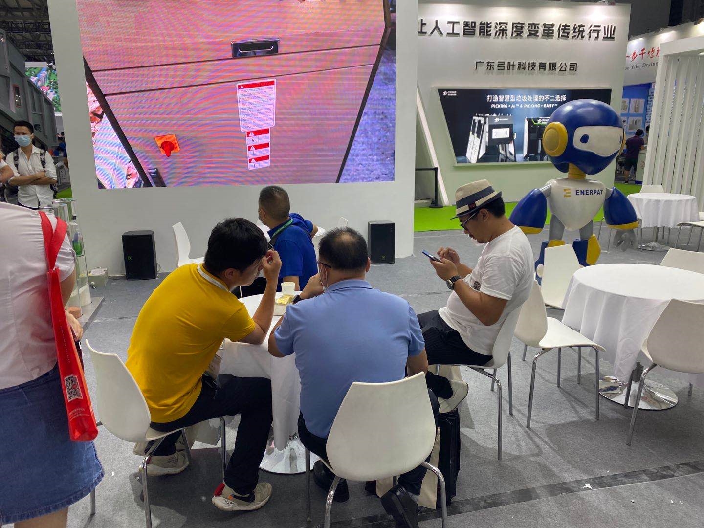 展會(huì)現(xiàn)場(chǎng)視頻展示中心通過(guò)三維動(dòng)畫、車間實(shí)景、設(shè)備工作現(xiàn)場(chǎng)等多角度展示恩派特公司實(shí)力及固廢處置方案。這種直觀生動(dòng)的展示方式吸引了大量參觀者駐足觀看,幫助了大家更深刻的了解到恩派特的產(chǎn)品優(yōu)勢(shì),對(duì)智能化也有了更直觀的體驗(yàn)。