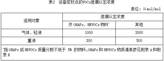 b)密封點(diǎn)的VOCs泄漏檢測(cè)值超過(guò)表2規(guī)定的泄漏認(rèn)定濃度值。