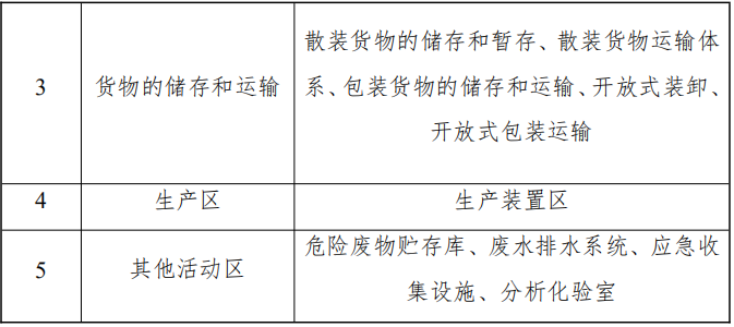 可參考表2,識(shí)別涉及有毒有害物質(zhì)的重點(diǎn)場(chǎng)所或者重點(diǎn)設(shè)施設(shè)備,編制企業(yè)土壤污染隱患重點(diǎn)場(chǎng)所、重點(diǎn)設(shè)施設(shè)備清單。若鄰近的多個(gè)重點(diǎn)設(shè)施設(shè)備防滲漏、流失、揚(yáng)散的要求相同,可合并為一個(gè)重點(diǎn)場(chǎng)所。