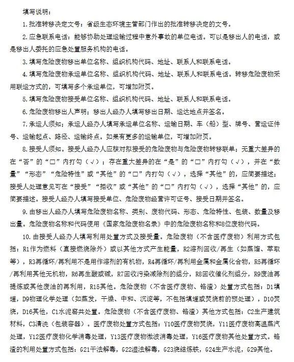 (三)根據(jù)危險廢物管理計劃運(yùn)行危險廢物轉(zhuǎn)移聯(lián)單,在危險廢物轉(zhuǎn)移聯(lián)單中如實(shí)填寫移出人、承運(yùn)人、接受人信息以及擬轉(zhuǎn)移危險廢物的種類、重量(數(shù)量)、危險特性等危險廢物信息和環(huán)境應(yīng)急措施;