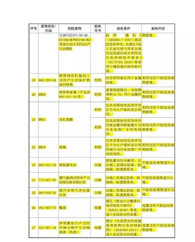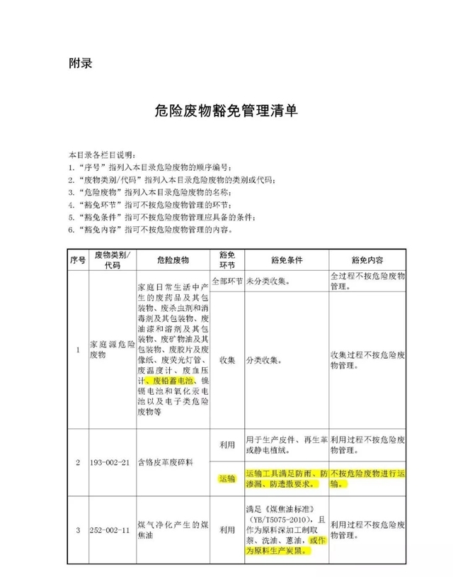第四條 列入本名錄附錄《危險廢物豁免管理清單》中的危險廢物,在所列的豁免環(huán)節(jié),且滿足相應(yīng)的豁免條件時,可以按照豁免內(nèi)容的規(guī)定實行豁免管理。