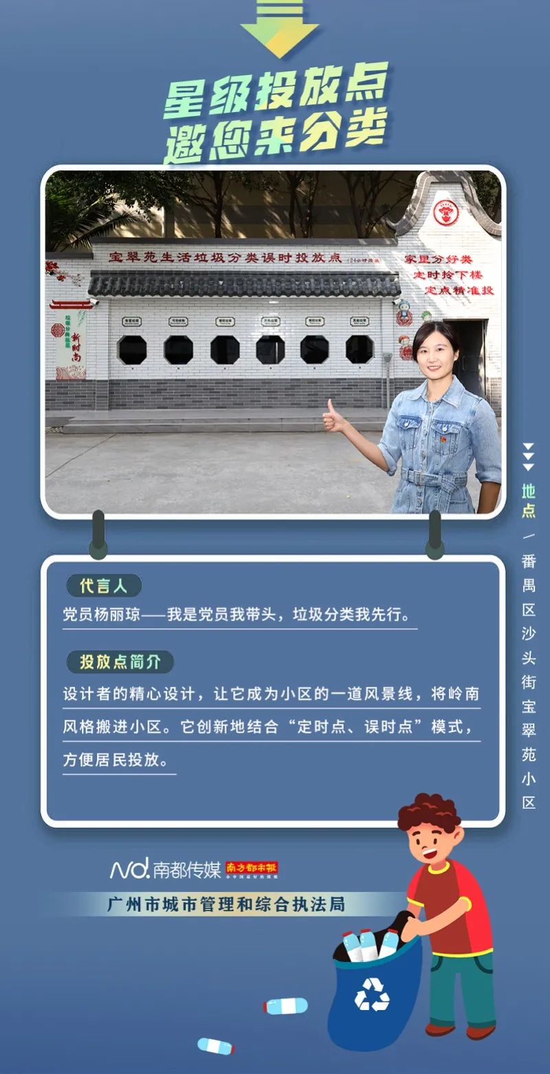 廣州市城市管理和綜合執(zhí)法局聯(lián)合南方都市報聯(lián)合推出“星級投放點 邀您來分類”系列海報,從廣州全市11個行政區(qū)遴選出“星級投放點”,并邀請來自各行各業(yè)的11位廣州街坊為廣州垃圾分類代言。
