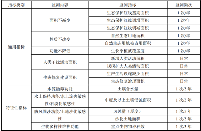 監(jiān)測內(nèi)容包括生態(tài)保護(hù)紅線內(nèi)年度實際完成的各類型人類活動及設(shè)施清退面積與生態(tài)修復(fù)治理面積總和。