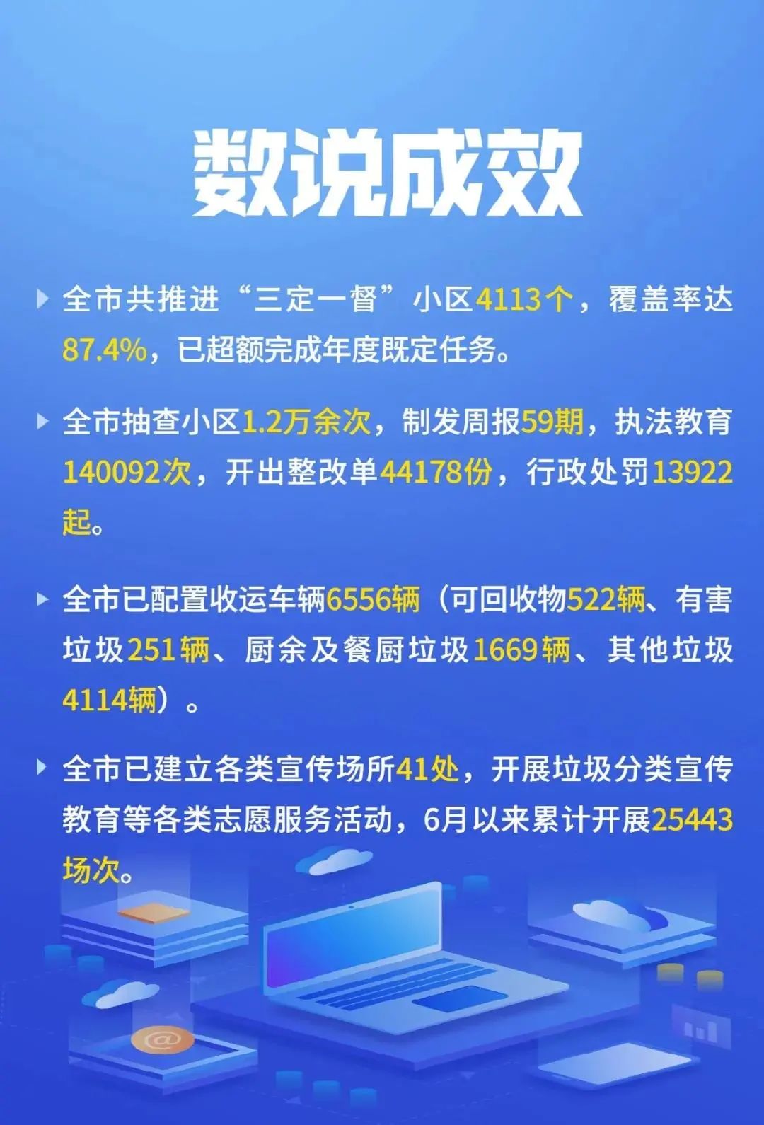 ? 4.3萬名黨政機關(guān)人員參與垃圾分類在線考試,參與率95%;辦公室垃圾分類投放準確率從二季度的53%上升至目前的80%。