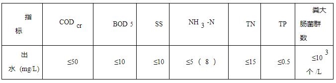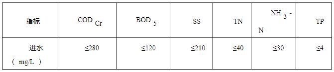 設(shè)計進水水質(zhì)及出水水質(zhì)指標: