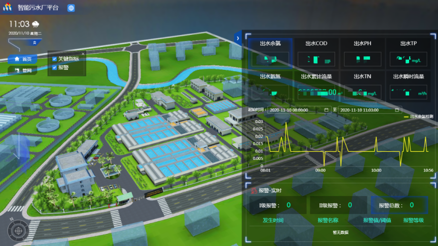 通過云計(jì)算、物聯(lián)網(wǎng)、APP等技術(shù)將實(shí)現(xiàn)數(shù)字化運(yùn)營。隨時(shí)隨地掌握廠內(nèi)生產(chǎn)工藝數(shù)據(jù)、設(shè)備運(yùn)行數(shù)據(jù)、視頻安防信息、經(jīng)濟(jì)指標(biāo)等污水廠運(yùn)營情況,在家也能對廠內(nèi)生產(chǎn)情況了如指掌。
