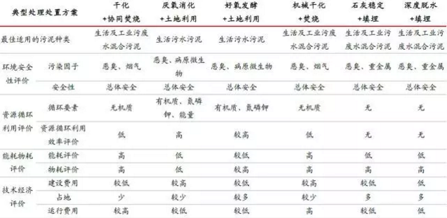 污泥處理技術(shù)路線(xiàn)評(píng)價(jià)比較表