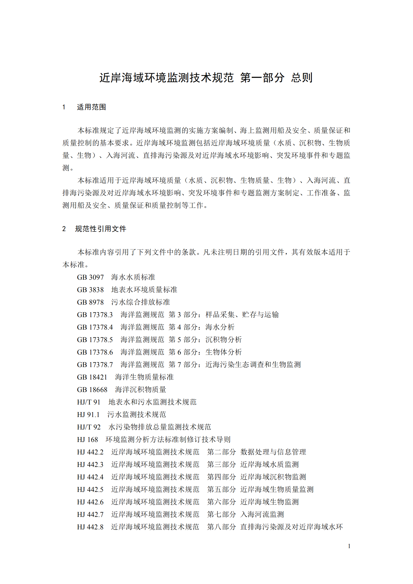 相關(guān)資料下載:近岸海域環(huán)境監(jiān)測技術(shù)規(guī)范 第一部分 總則.pdf