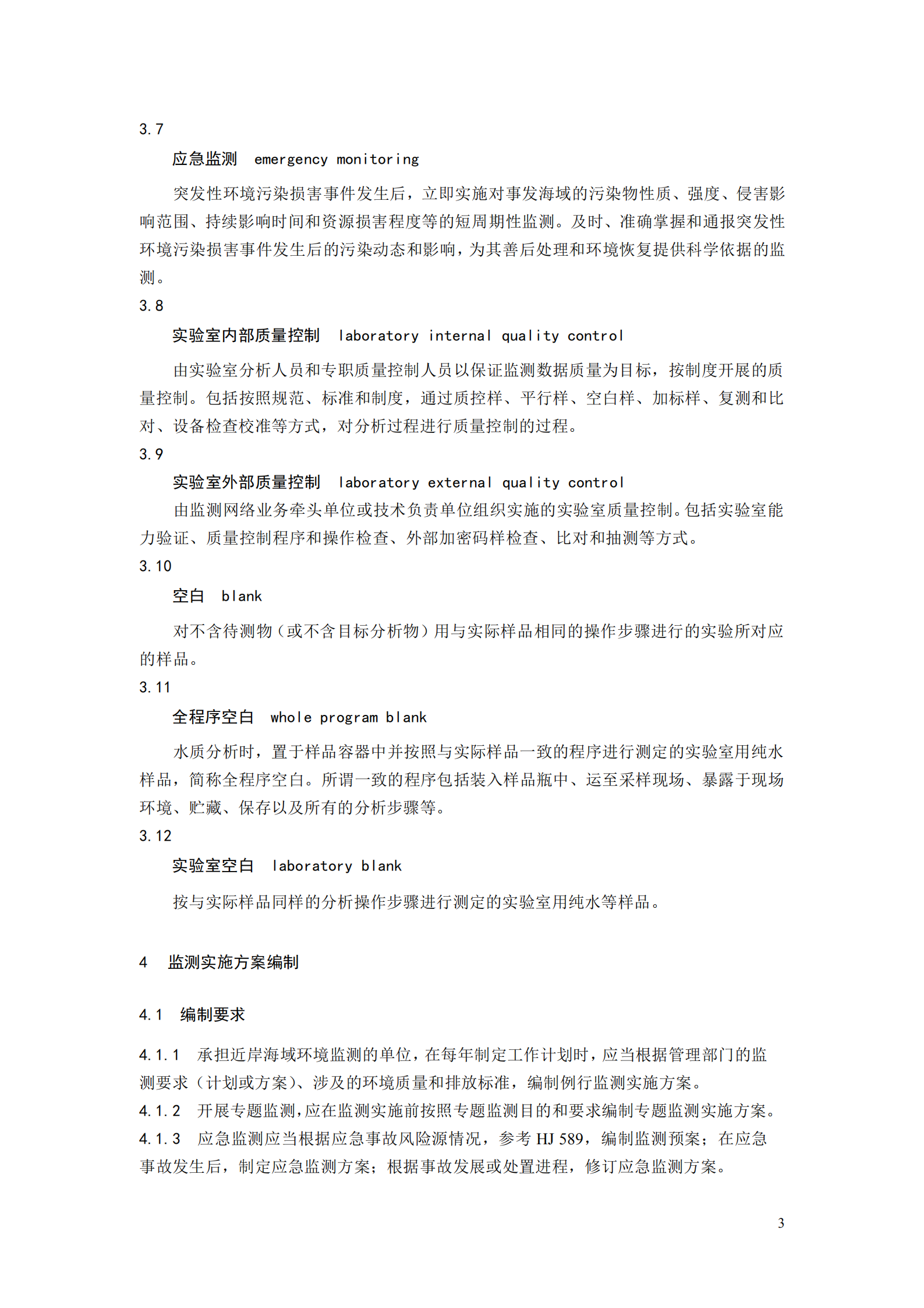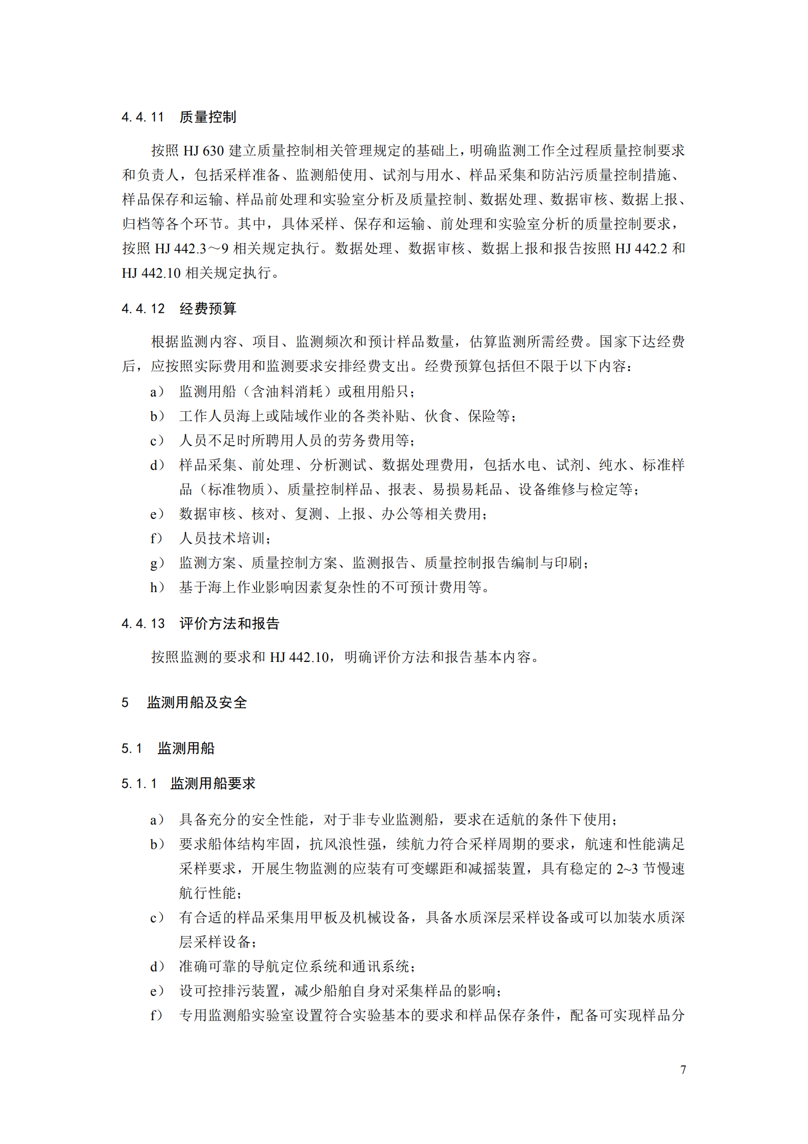 本標準作為修訂后標準的第一部分,針對監(jiān)測實施方案編制、監(jiān)測用船及安全和質(zhì)量保證和質(zhì)量控制基本要求,主要修訂以下幾方面內(nèi)容: