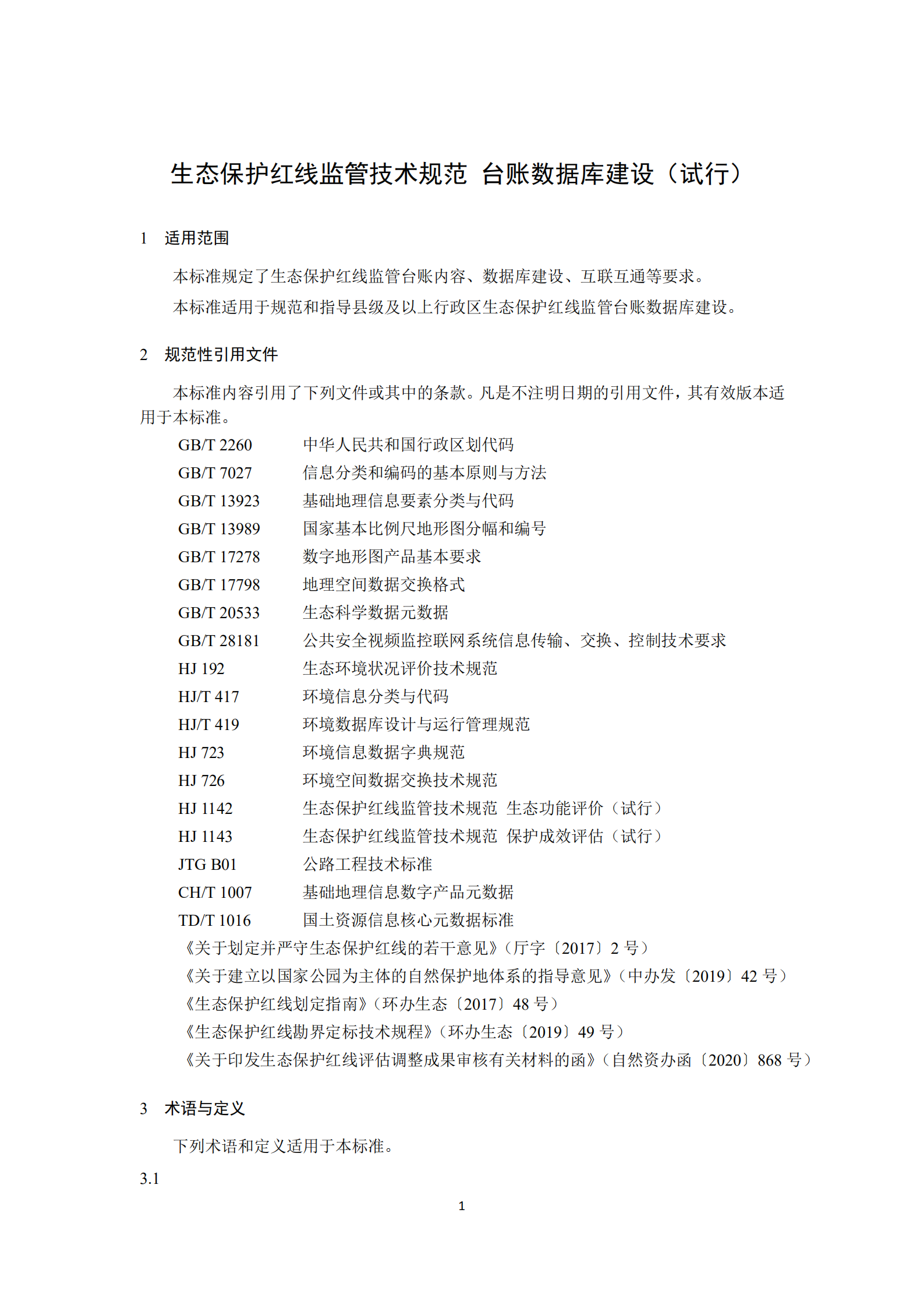 生態(tài)保護紅線監(jiān)管技術(shù)規(guī)范 臺賬數(shù)據(jù)庫建設(shè)(試行)