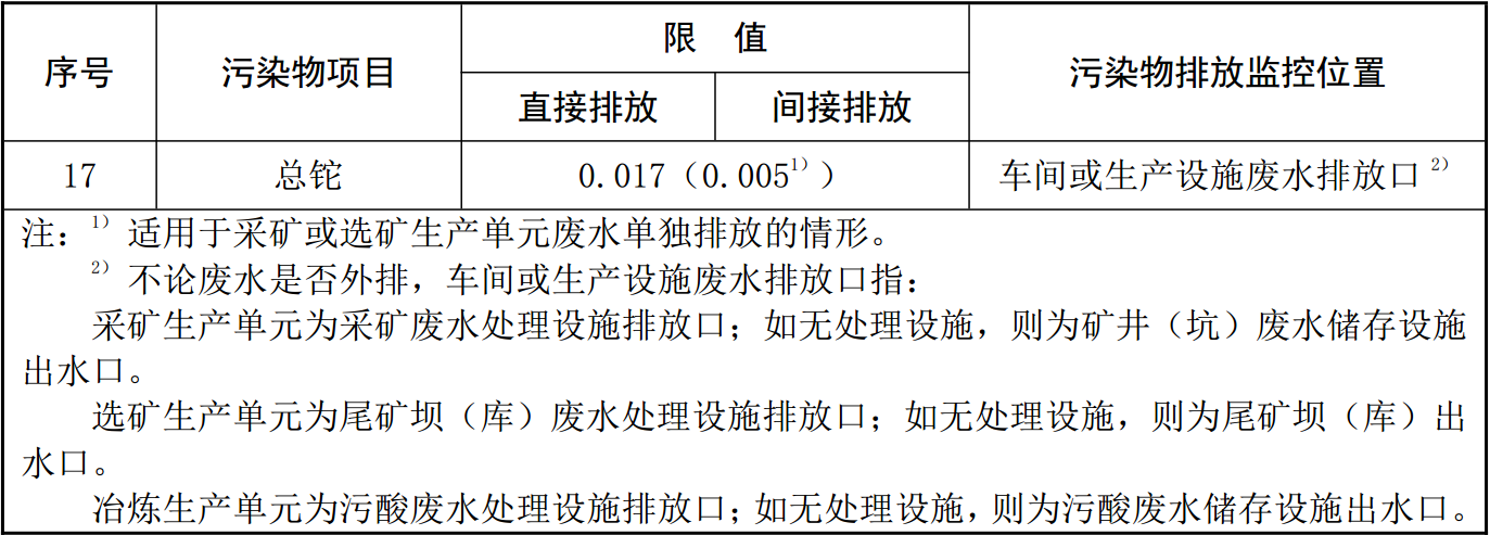 二、在“表 2 新建企業(yè)水污染物排放濃度限值及單位產(chǎn)品基準排水量”“表 3 水污染物特別排放限值”中,增加總鉈排放限值要求(單位為 mg/L):