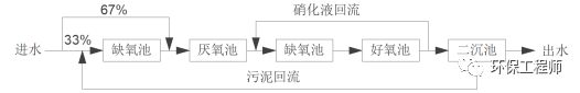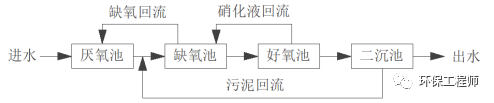 A2/O這是一個很成熟的脫氮除磷工藝,后續(xù)介紹的其他脫氮處理工藝基本上是為克服A2/O工藝的缺點而進行改動的,從而在節(jié)能的基礎之上滿足出水要求。