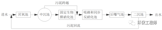 其實該工藝還有一定的缺陷,比如:①厭氧池中無法完全吸附有機物,導致固定膜反應器進水中攜帶有BOD,一方面抑制硝化反應,另一方面造成有機物的浪費和能耗的增高;②在進水氨氮偏高時,缺氧池中反硝化除磷菌不能徹底的去除硝氮,導致出水TN的升高。