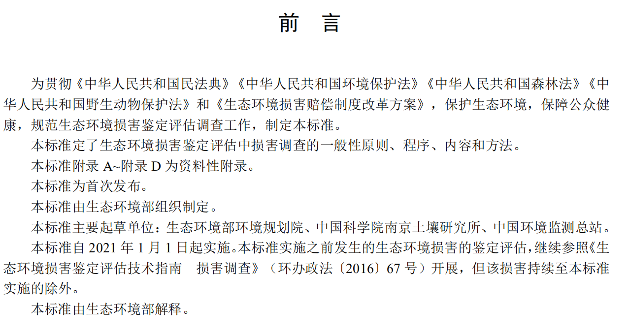 為貫徹《生態(tài)環(huán)境損害賠償制度改革方案》和有關(guān)法律、法規(guī),保護生態(tài)環(huán)境,保障公眾健康,規(guī)范生態(tài)環(huán)境損害鑒定評估工作,我部會同有關(guān)部門制定了《生態(tài)環(huán)境損害鑒定評估技術(shù)指南 總綱和關(guān)鍵環(huán)節(jié) 第1部分:總綱》等六項標準,現(xiàn)聯(lián)合國家市場監(jiān)督管理總局予以發(fā)布。