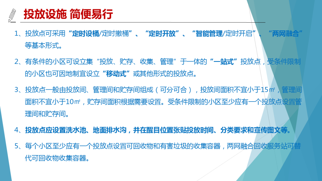 自習(xí)近平總書記2016年11月21日提出要建立生活垃圾分類制度以來,46個重點城市的垃圾分類工作取得了初步成效,其他城市的垃圾分類工作也在逐步推進(jìn),但由于受新冠疫情等影響,總體進(jìn)展情況低于預(yù)期。垃圾分類是一項涉及面很廣的系統(tǒng)工程,其中小區(qū)投放環(huán)節(jié)是決定成敗的核心環(huán)節(jié),而“簡便易行、合理布局”是投放設(shè)施設(shè)置的基本準(zhǔn)則。如何按照這個準(zhǔn)則來規(guī)范管理人職責(zé)和行為、優(yōu)化投放點設(shè)置和形式、實施居民區(qū)宣傳和督導(dǎo)?本期固廢觀察將與你一一分享。