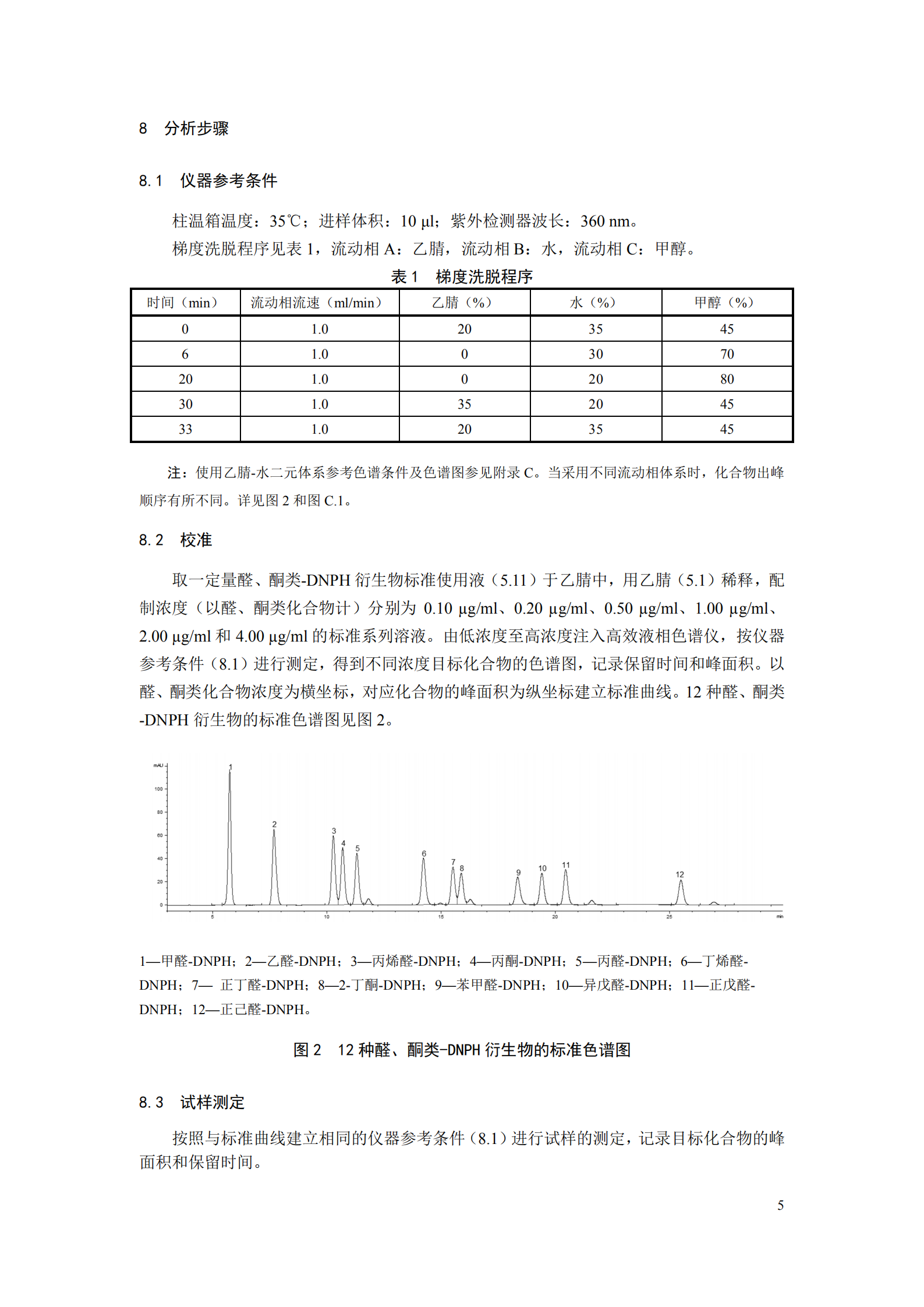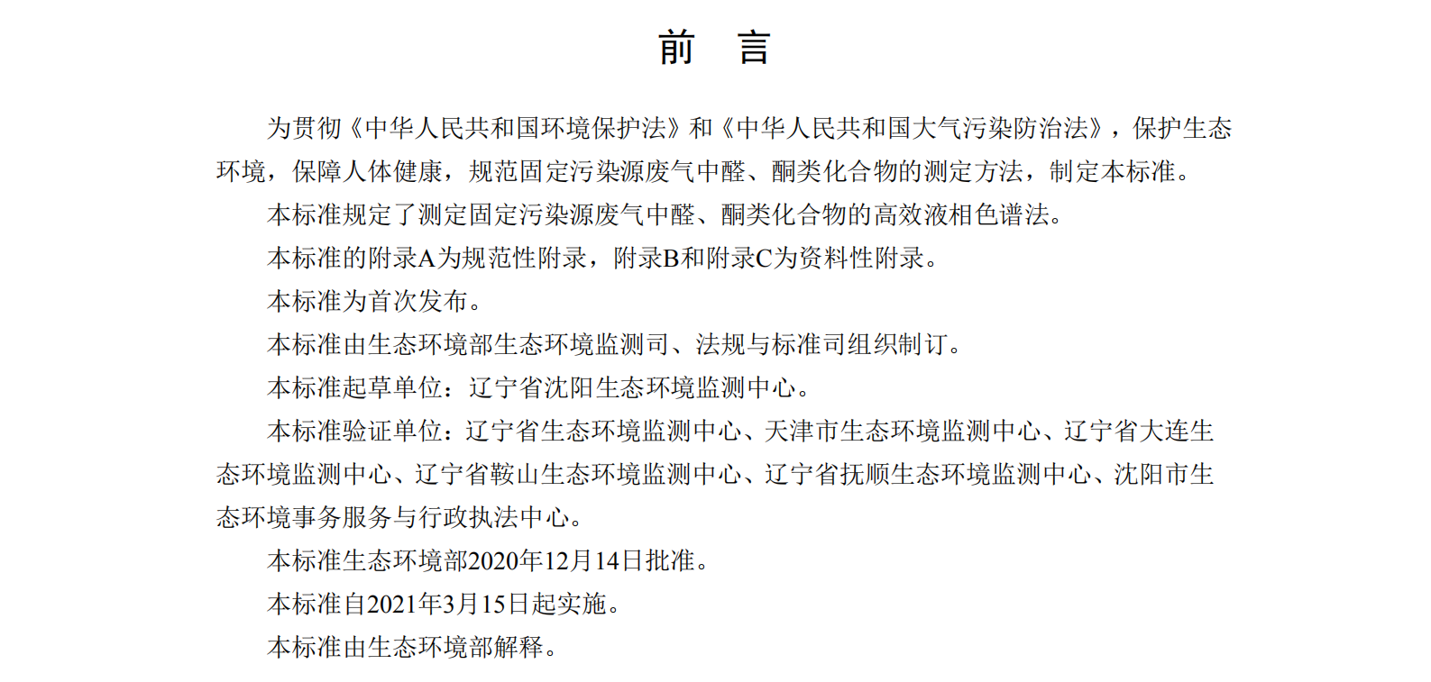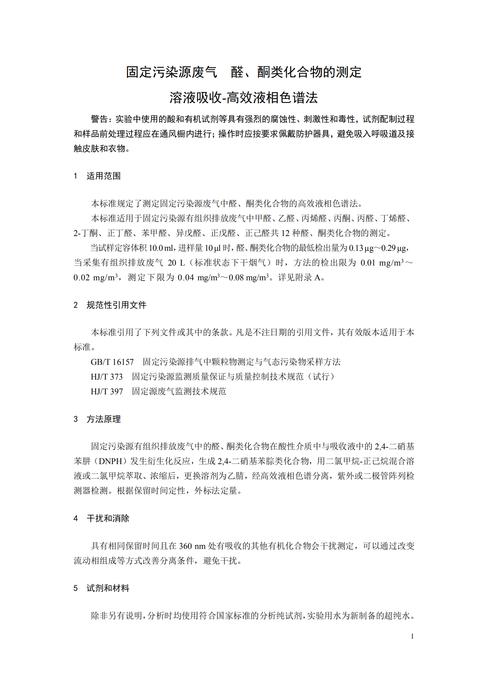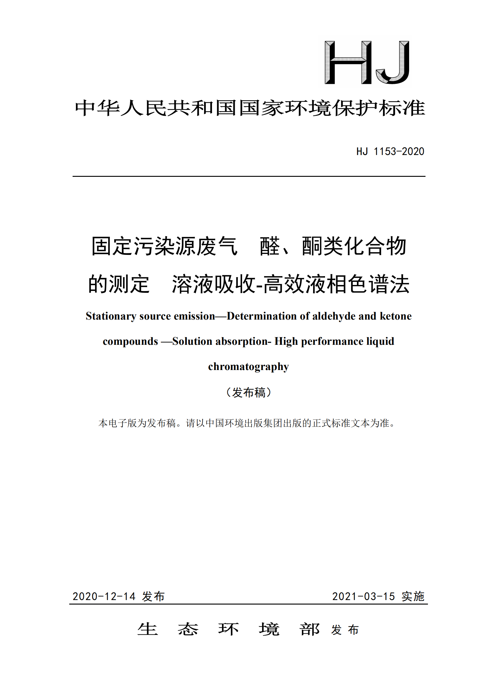 本標(biāo)準(zhǔn)規(guī)定了測(cè)定固定污染源廢氣中醛、酮類化合物的高效液相色譜法。