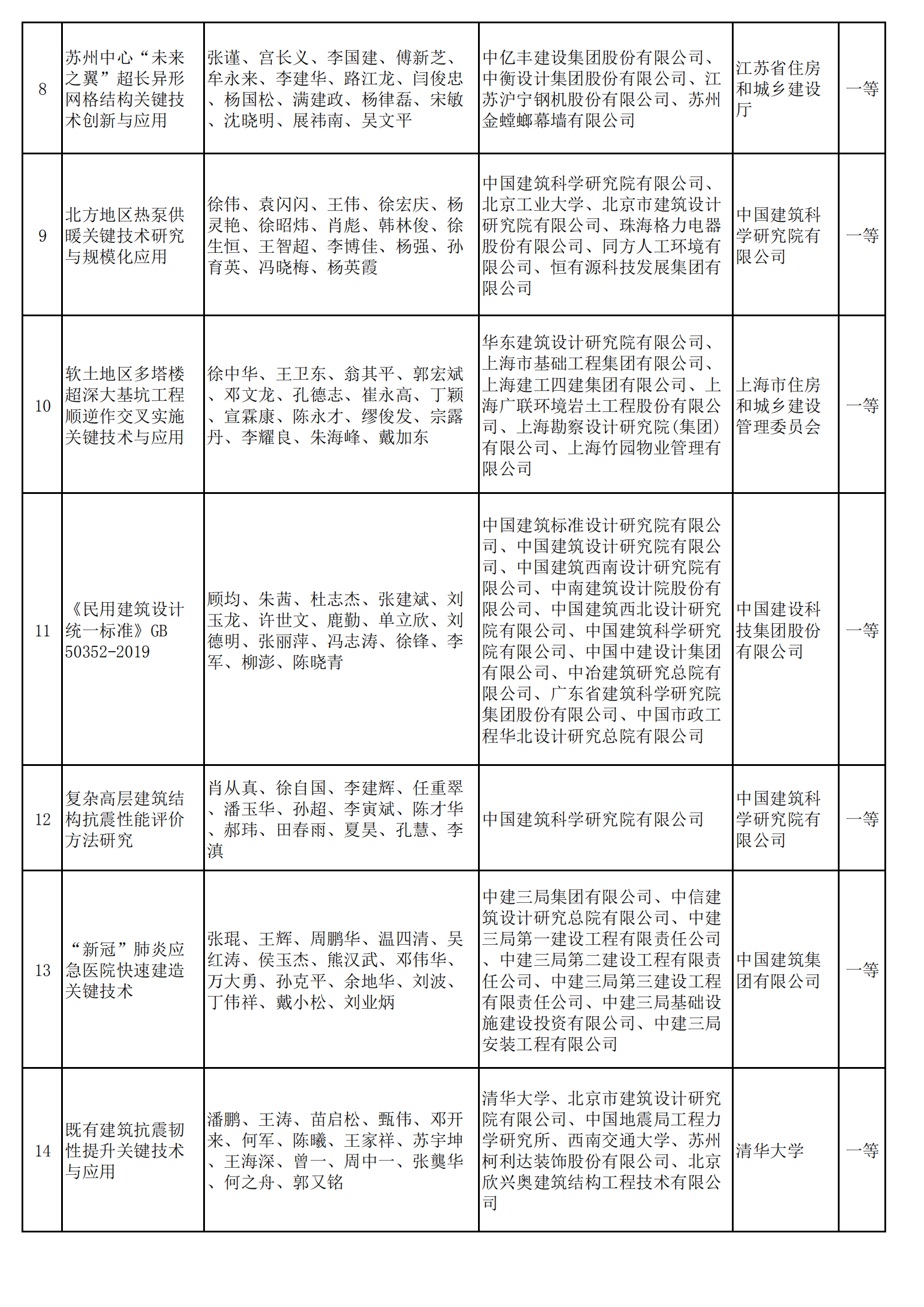2020年度華夏建設(shè)科學(xué)技術(shù)獎評審、公示工作已經(jīng)結(jié)束。經(jīng)華夏建設(shè)科學(xué)技術(shù)獎勵委員會審核批準(zhǔn),2020年度授獎項目共198項,其中一等獎29項、二等獎60項、三等獎109項,現(xiàn)予公告。