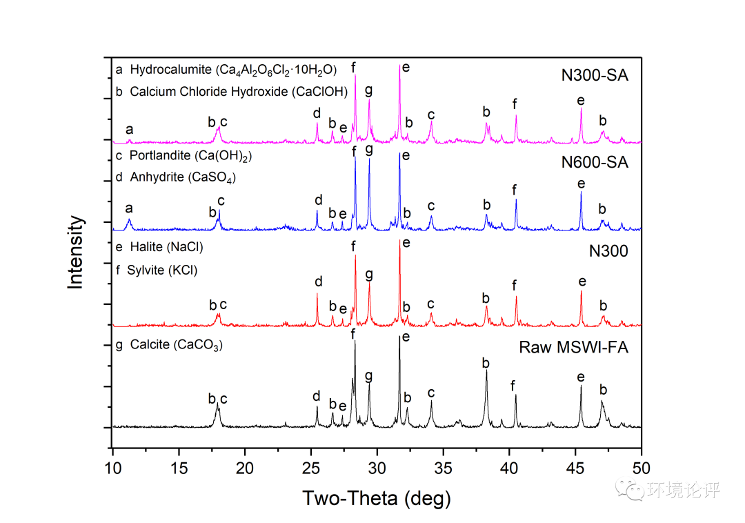 將n-Al/CaO材料應(yīng)用于生活垃圾焚燒飛灰的固化穩(wěn)定化過(guò)程中,以10%質(zhì)量比的添加量即可獲得較好的處理效果。在實(shí)驗(yàn)條件下,重金屬的浸出濃度均可低于填埋場(chǎng)入場(chǎng)標(biāo)準(zhǔn),固定率達(dá)到99.9%,以N600SA實(shí)驗(yàn)組為最佳。在此過(guò)程中反應(yīng)體系中新生成水鋁鈣石類(lèi)礦物,強(qiáng)化重金屬固定。經(jīng)n-Al/CaO固化穩(wěn)定化后氯苯類(lèi)物質(zhì)的總含量顯著降低,82.43%的六氯苯得到降解去除,未產(chǎn)生其他氯苯類(lèi)物質(zhì)的積累。