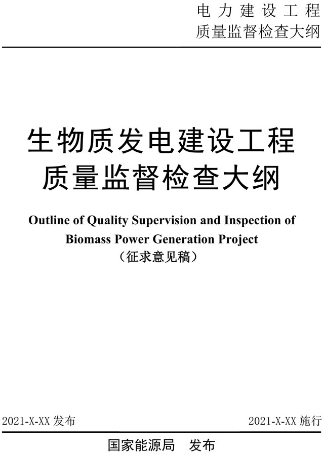 為貫徹落實《建設工程質(zhì)量管理條例》和電力建設工程質(zhì)量管理有關規(guī)定,規(guī)范農(nóng)林生物質(zhì)發(fā)電工程的質(zhì)量監(jiān)督檢查工作,保障工程建設質(zhì)量,國家能源局組織編制了《生物質(zhì)發(fā)電建設工程質(zhì)量監(jiān)督檢查大綱》(以下簡稱《大綱》)。