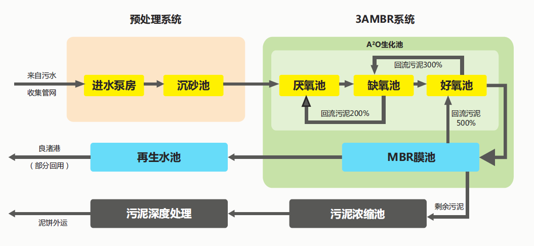 浙江省杭州市良渚污水處理廠三期工程的深度處理單元設(shè)計(jì)規(guī)模3.0萬(wàn)m³/d,處理工藝為天創(chuàng)環(huán)境自主研發(fā)的高效膜生物反應(yīng)器(MBR)集成技術(shù)。