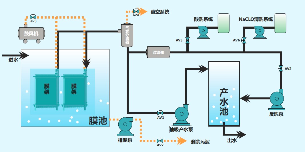 經(jīng)過(guò)MBR系統(tǒng)處理后,產(chǎn)品水CODCr穩(wěn)定在30mg/L以下,NH3-N穩(wěn)定在2mg/以下,濁度穩(wěn)定在0.1NTU以下,可滿足準(zhǔn)V類水水質(zhì)標(biāo)準(zhǔn)。