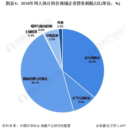 從營(yíng)業(yè)收入看,水污染防治、固廢處置與資源化、大氣污染防治3個(gè)領(lǐng)域企業(yè)的營(yíng)業(yè)收入占比居前列,3個(gè)領(lǐng)域企業(yè)營(yíng)業(yè)收入之和占比高達(dá)88.4%。