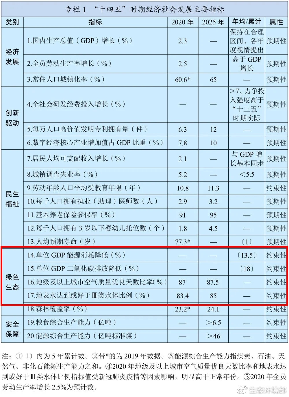 “十四五”時(shí)期主要目標(biāo)與環(huán)保相關(guān)的包括:
