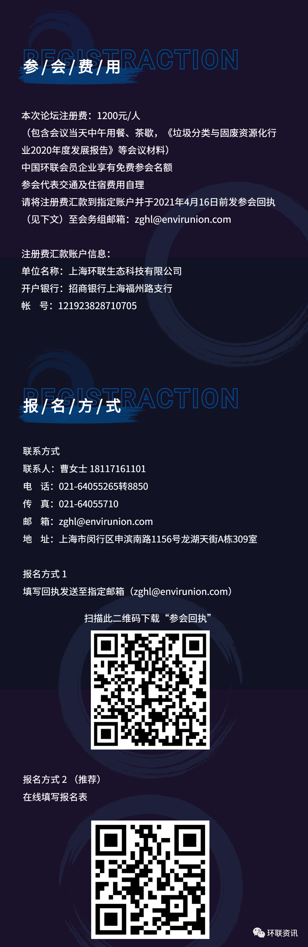 中國環(huán)聯(lián)將于2021年4月19日在上海舉辦第八屆固廢資源化高峰論壇,論壇主題“垃圾資源化,助力碳中和”。將邀請生活垃圾分類、廚余垃圾處理、垃圾焚燒發(fā)電、智慧環(huán)衛(wèi)管理、低碳技術(shù)應(yīng)用等領(lǐng)域卓越企業(yè)代表,高等院校資深專家及政府官員參加,解讀最新政策趨勢、分析市場特點(diǎn)及行業(yè)技術(shù)焦點(diǎn)、分享創(chuàng)新業(yè)務(wù)模式與經(jīng)營理念,為固廢資源化貢獻(xiàn)力量。期待您的參與,因為有您,論壇更加精彩!