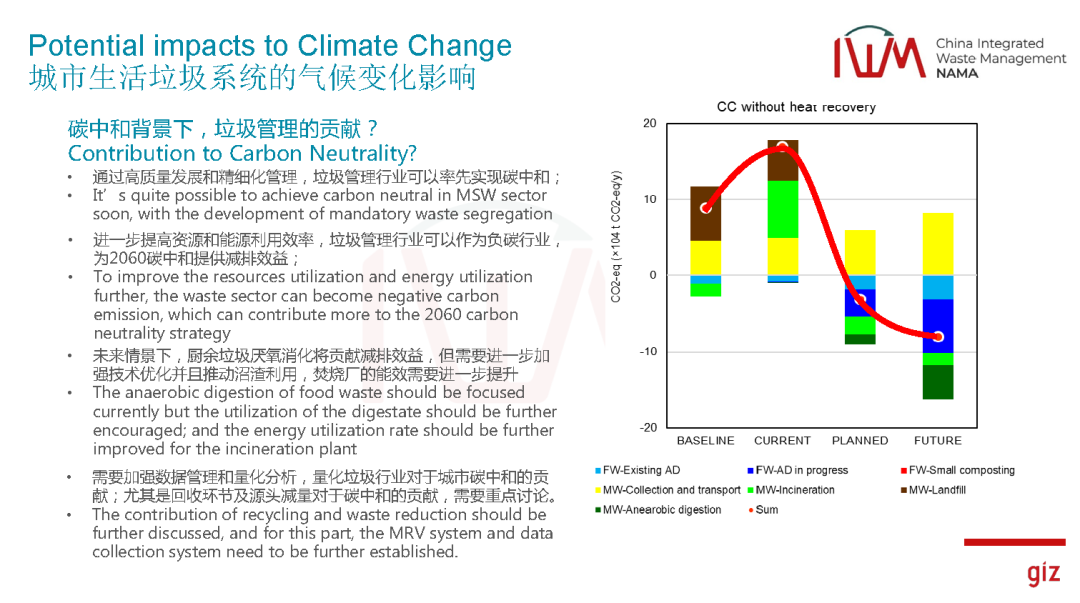 在歐盟過(guò)去的一些經(jīng)驗(yàn)告訴我們,雖然垃圾行業(yè)在整個(gè)碳排放的比例不是很高,剛才王總提到3%左右。但是過(guò)去十幾年的時(shí)間證明,在垃圾行業(yè)做減排相對(duì)來(lái)說(shuō)更容易、更成功。在過(guò)去十年左右,歐盟在整個(gè)垃圾管理行業(yè)貢獻(xiàn)了所有的溫室氣體減排量大概30%,雖然我們排放量很小,但是做減排第一有很好的協(xié)同效應(yīng),首先環(huán)境效益更好,減排效益更好,同時(shí)成本相對(duì)來(lái)說(shuō)更低一些,相比碳封存這些方式,在垃圾行業(yè)做這個(gè)事情具有更好的可執(zhí)行性。