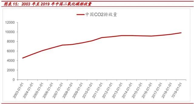 另一方面,在我國的碳排放格局中,能源活動,即化石燃料的燃燒以及 化石燃料開采時的溫室氣體排碳占比為 85.4%;工業(yè)過程,即工業(yè)生產(chǎn) 加工中產(chǎn)生的溫室企業(yè)排碳比重為 15.4%;此外,農(nóng)林業(yè)生產(chǎn)活動的綠 植吸收對排碳貢獻(xiàn)為-0.8%。
