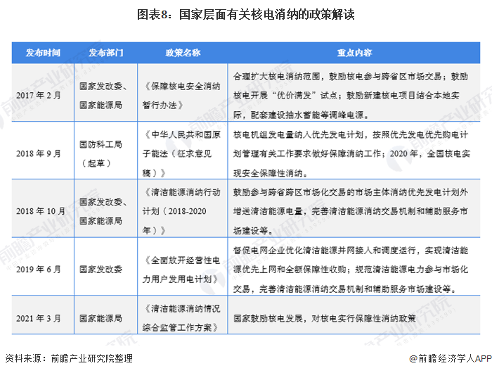 在核電消納方面,“十三五”以來,國家發(fā)改委、國家能源局等相關部門也陸續(xù)出臺相關政策推進核電消納工作,具體內(nèi)容包括擴大核電消納范圍、實行保障性消納政策等。