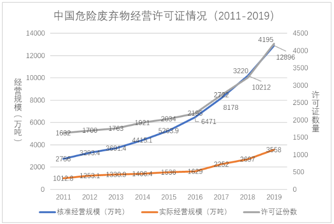 危險(xiǎn)廢棄物處理核準(zhǔn)經(jīng)營(yíng)規(guī)模遠(yuǎn)超實(shí)際經(jīng)營(yíng)規(guī)模,許可證容量錯(cuò)配問題鮮有改善。