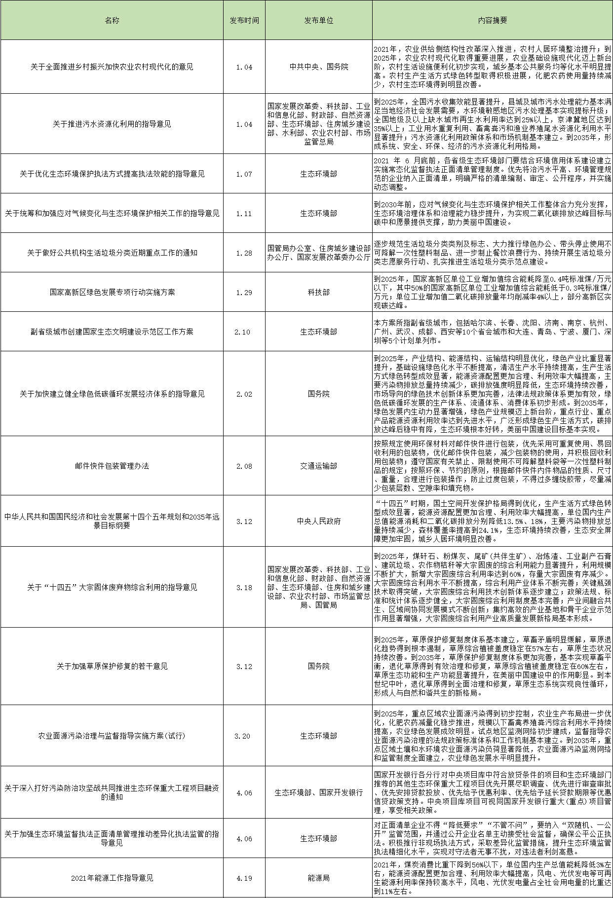 《關(guān)于統(tǒng)籌和加強應對氣候變化與生態(tài)環(huán)境保護相關(guān)工作的指導意見》明確指出,要為實現(xiàn)二氧化碳排放達峰目標與碳中和愿景提供支撐;《關(guān)于加快建立健全綠色低碳循環(huán)發(fā)展經(jīng)濟體系的指導意見》要求,到2025年,綠色低碳循環(huán)發(fā)展的生產(chǎn)體系、流通體系、消費體系初步形成。