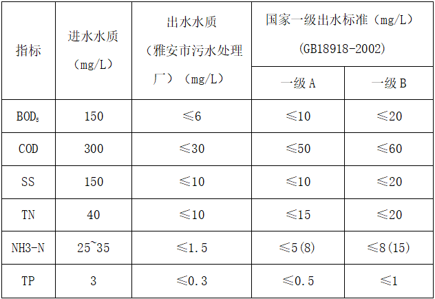 青衣江屬岷江水系,雅安市位于岷江上游,提高污水處理廠排放標(biāo)準(zhǔn)必將提高岷江的環(huán)境水質(zhì)指標(biāo)。提高青衣江環(huán)境水質(zhì)指標(biāo)不僅要依靠進一步加大城鄉(xiāng)水環(huán)境綜合治理力度,源頭減排,過程控制,繼續(xù)深入推進河渠下河排水口治理,同時,提升污水處理廠排放標(biāo)準(zhǔn),使其和地表水環(huán)境質(zhì)量標(biāo)準(zhǔn)接軌,也是從根本上減少污染物排放,盡快推動水環(huán)境質(zhì)量達(dá)標(biāo)的重要措施。原雅安市污水處理廠排放標(biāo)準(zhǔn)為一級B標(biāo),尾水排入青衣江。